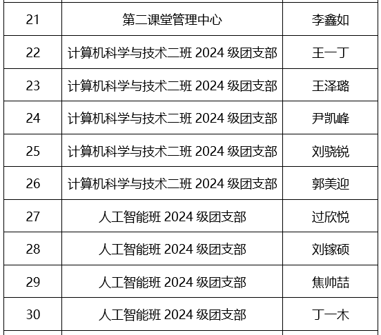 根据共青团中央《关于深入实施青年马克思主义者培养工程的意见》(中青发〔2020〕5号)的相关要求,院团委于2025年11月13日启动2025年青年马克思主义者培养工程骨干培训班(第二期)学员遴选工作。经个人申报、组织推荐、院团委考察等环节,拟录取李靖汐、赵天宇等35人为本期“青马工程”骨干培训班学员,现予以公示。